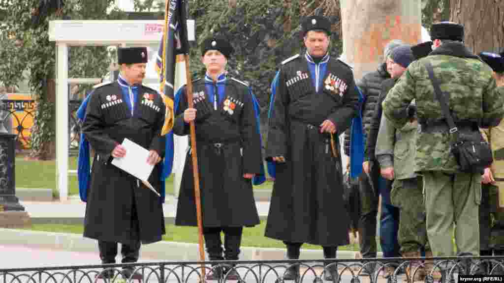 Представители российских казачьих организаций и немного местных казаков