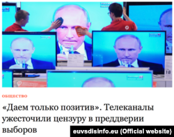 В статье, опубликованной независимым российским изданием The Insider, журналисты, работающие на ведущих государственных телеканалах, описывают политические указания, полученные руководством их каналов на период предвыборной агитации. Общая информация от источников The Insider, о которой все говорили анонимно, заключается в том, что о Путине надо говорить как о президенте, а не как о кандидате, и эти новости не должны содержать упоминаний о президенте рядом с упоминаниями о других кандидатах.