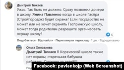 «Когда в школе Гаспры (Стройгородок) будет охрана? Если государство не может или не хочет охранять гаспринскую школу, может, тогда родителям разрешите организовать охрану?» – написал Дмитрий Тюкаев.