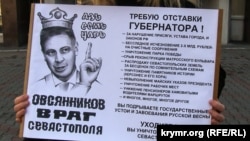 Как сообщает корреспондент Крым.Реалии, пикеты проходили у здания российской администрации Севастополя. Активисты сменяли друг друга, держа в руках плакат: «Овсянников – враг Севастополя. Требую отставки губернатора».
